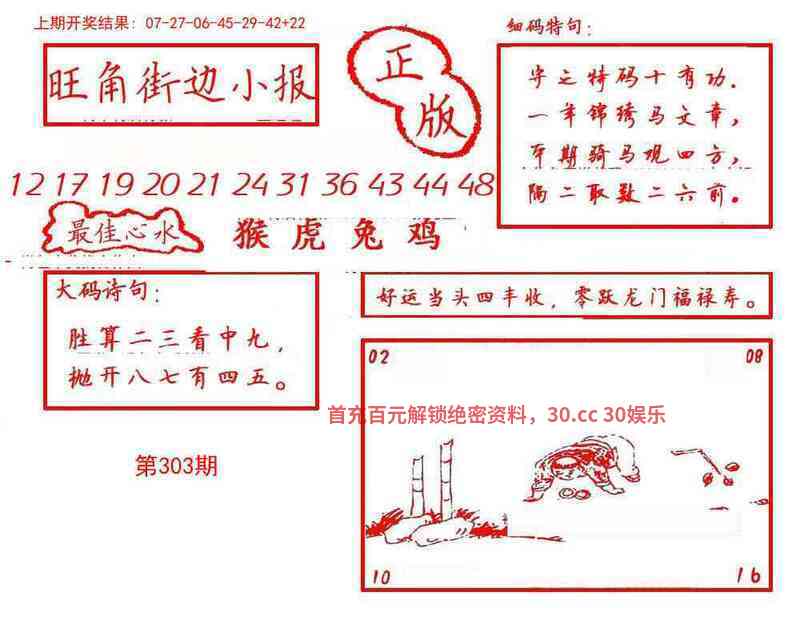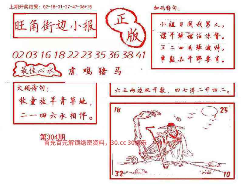 | 306期 | 猪 | 蓝波单 | 3尾 | 开牛17 |